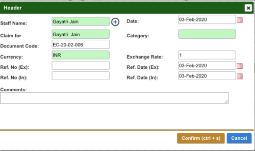 To open the header section, click on edit header or simply press h. In Edit Header, a user can add new or can edit details of the claim.