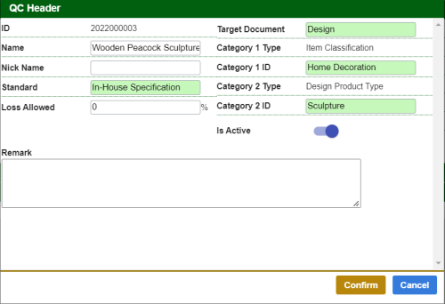 To edit the QC Header, click on the Edit Header action button. A popup is opened.